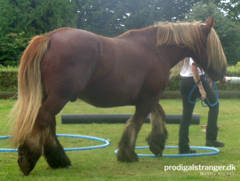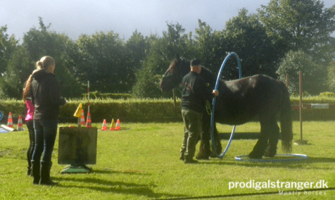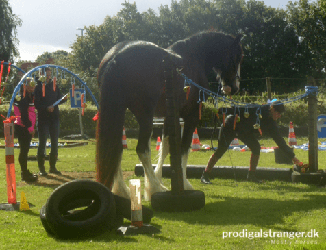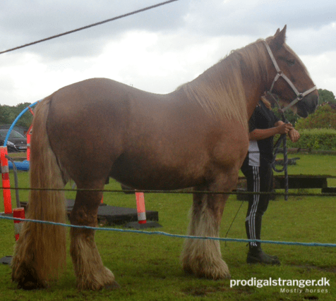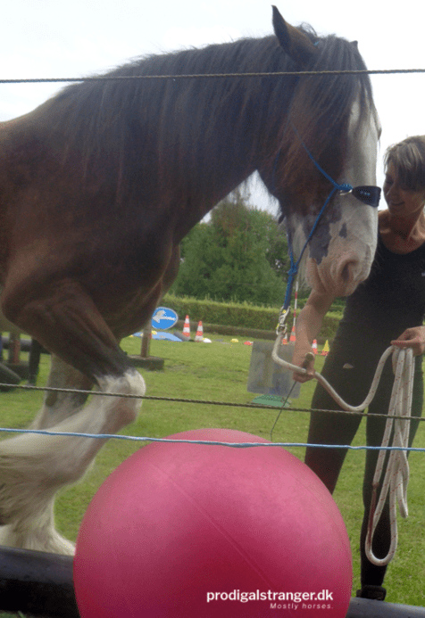 A view of the agility course. And the cloudscape. Such odd weather!Jutland drafts also come in black.This Shire knows what carrots are for.Gotta hand it to the Shires, they’re TALL. Of course, this guy is currently the tallest Shire in Denmark.This fellow is one of the most gorgeous horses I have ever seen. If I ever change my mind on Emilie having babies … (I’d need to un-geld him first, of course).Seriously. Look at that horse. He is gorgeous.<3Bloody tall Shires.Not every horse was a gazillion hands tall, of course.Gorgeous and interested, what’s not to love?Interestingly, the idea of pushing the yoga ball ahead of themselves was a very challenging obstacle to most of the attendees.This little Shetland mare was the embodiment of alert and attentive all the way through.It was a very challenging ball.This lady impressed me. She lead her Icelandic horse with just a halter and her voice. No stick, no rope halter, no nothing. Just patiently explaining to him what to do, even when he was clearly worried.These two kids faced the challenge and aced it.Meet young man Michael. Michael liked sucking on my fingers.